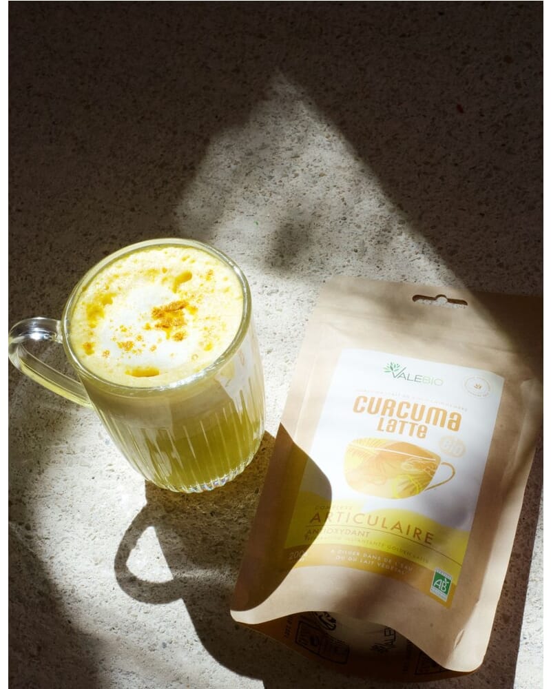 • - Curcuma Latte : Verser une à deux cuillères à café dans une tasse, ajouter 200ml de lait ou lait végétal, ajouter une pincée de cannelle en poudre, bien mélanger et déguster chaud ou froid.