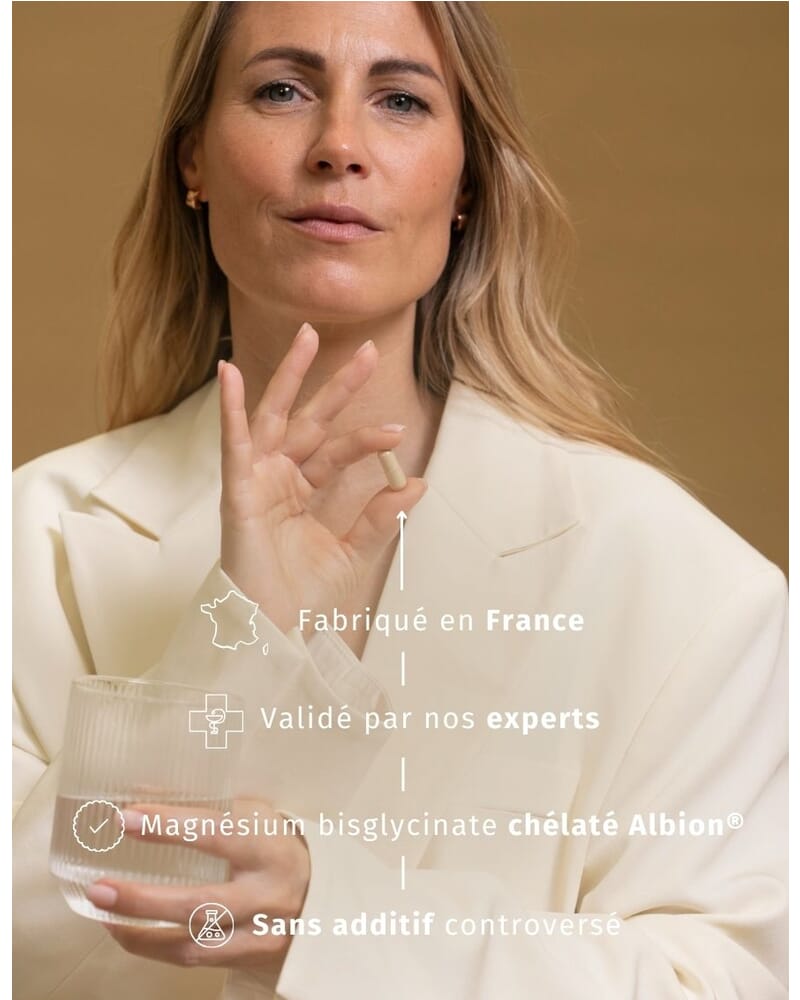 Le magnésium est d’origine minérale, la glycine provient de la biofermentation, et les gélules sont végétales.