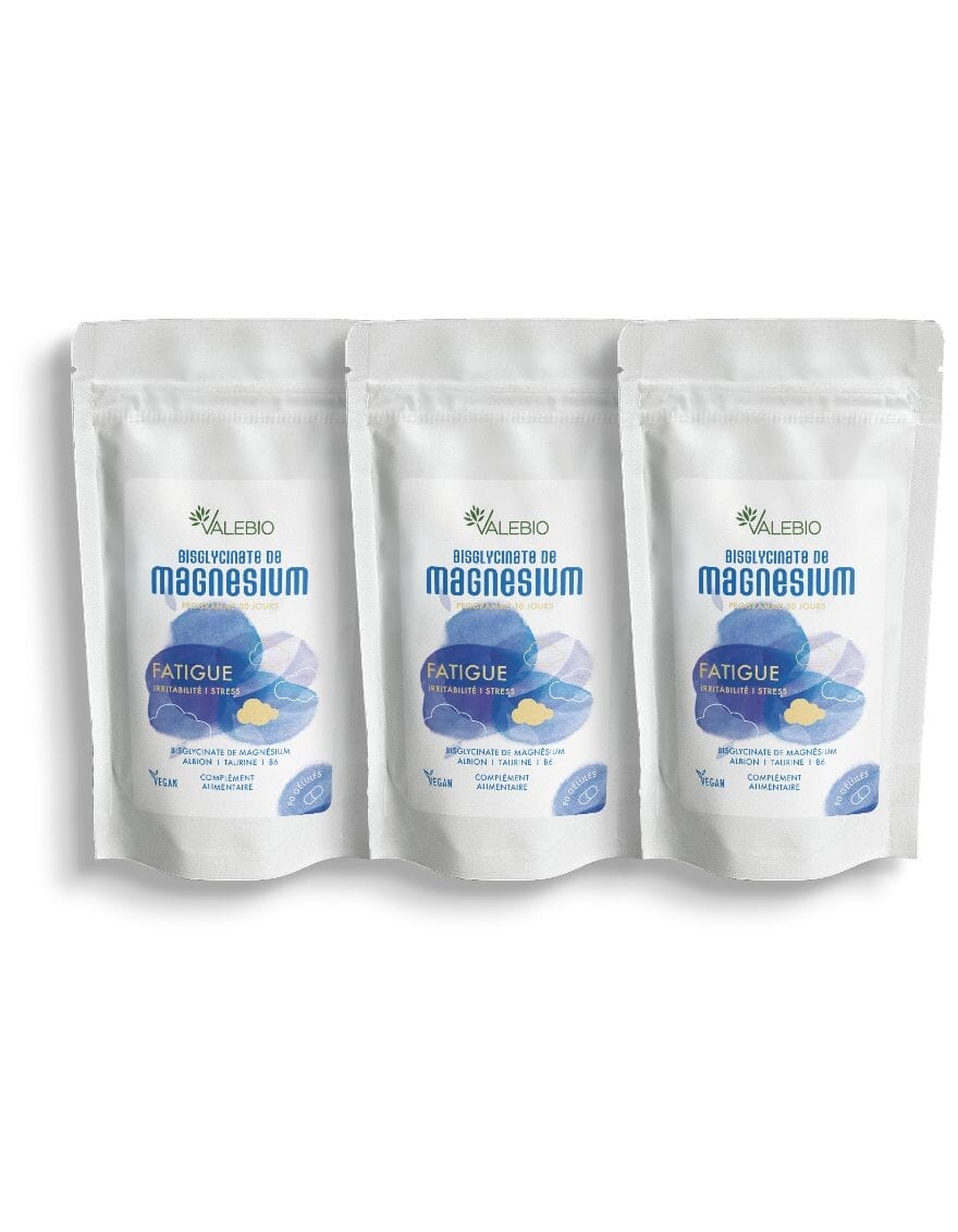 Naturel, efficace et parfaitement assimilé, le Bisglycinate de Magnésium Valebio® est la réponse idéale pour réduire la fatigue, soutenir le système nerveux et améliorer la qualité du sommeil. Contrairement aux formes classiques (oxyde ou citrate), il est hautement biodisponible (absorption de 60–80 % vs 30–40 %) et très bien toléré sur le plan digestif, même pour les intestins sensibles.