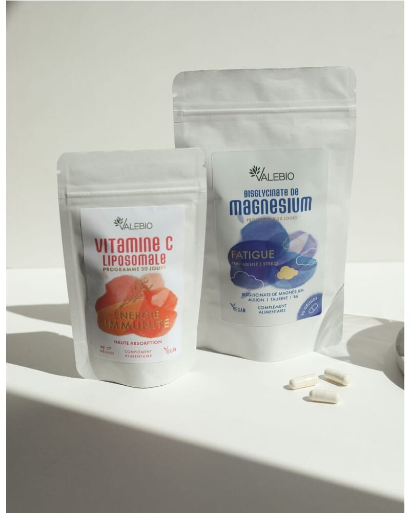 Les caractéristiques de nos compléments alimentaires Bisglycinate de Magnésium & Vitamine C Liposomale