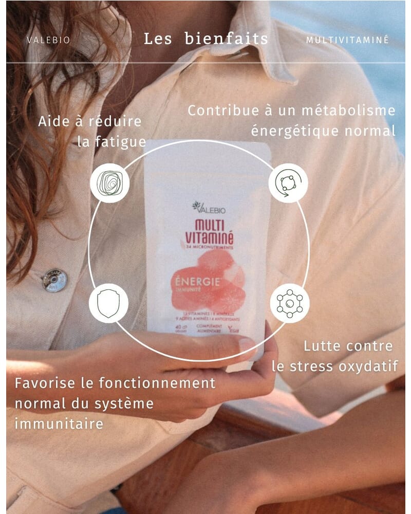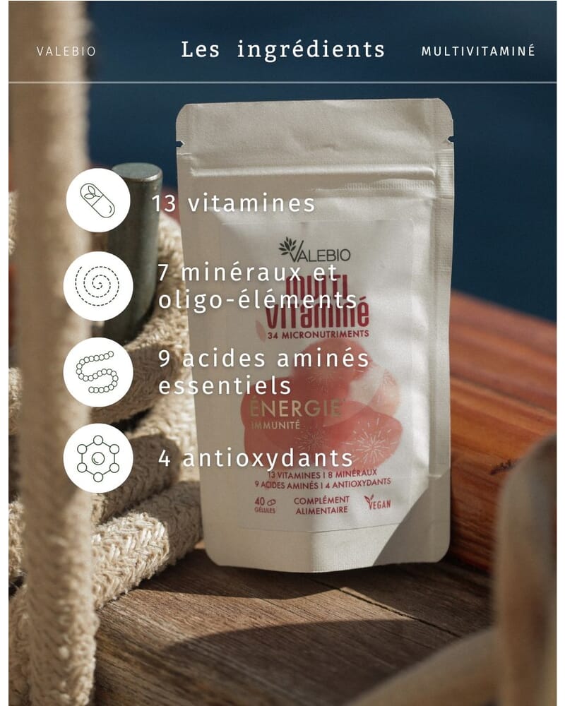 Le Multivitaminé Valebio® se distingue par sa composition unique et équilibrée, intégrant des ingrédients naturels et de haute qualité, fabriqués en France. Nous privilégions la biodisponibilité et l'efficacité de chaque nutriment pour garantir des résultats optimaux. Notre complément alimentaire inclut des vitamines liposolubles et hydrosolubles pour une absorption maximale.Les femmes ont-elles des besoins plus spécifiques pour consommer une cure multivitamines ?
