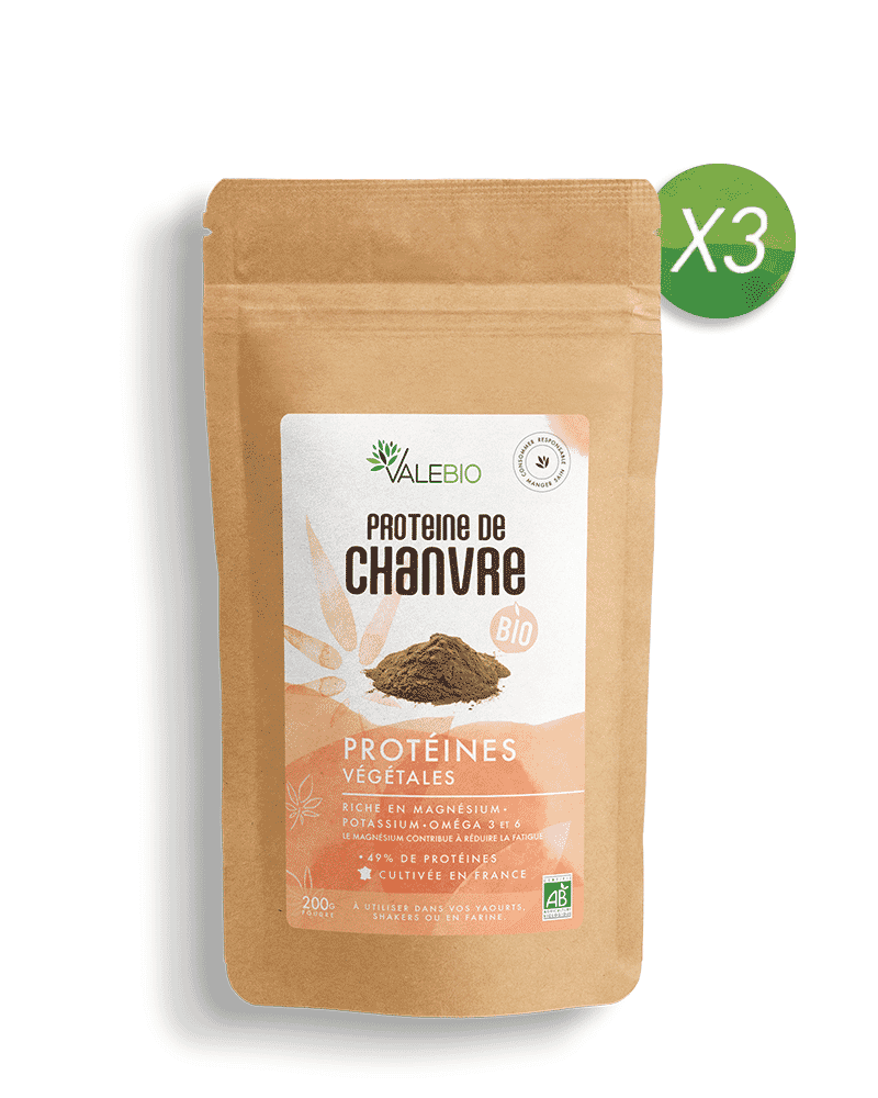 D'où viennent nos graines de chanvre ?Nos graines de Chanvre sont cultivées dans les Landes à partir de plants de chanvre puis broyées à froid sous une meule. Un tourteau en ressort puis, est tamisé pour en extraire notre farine de chanvre à 49% de protéines.Allégations
