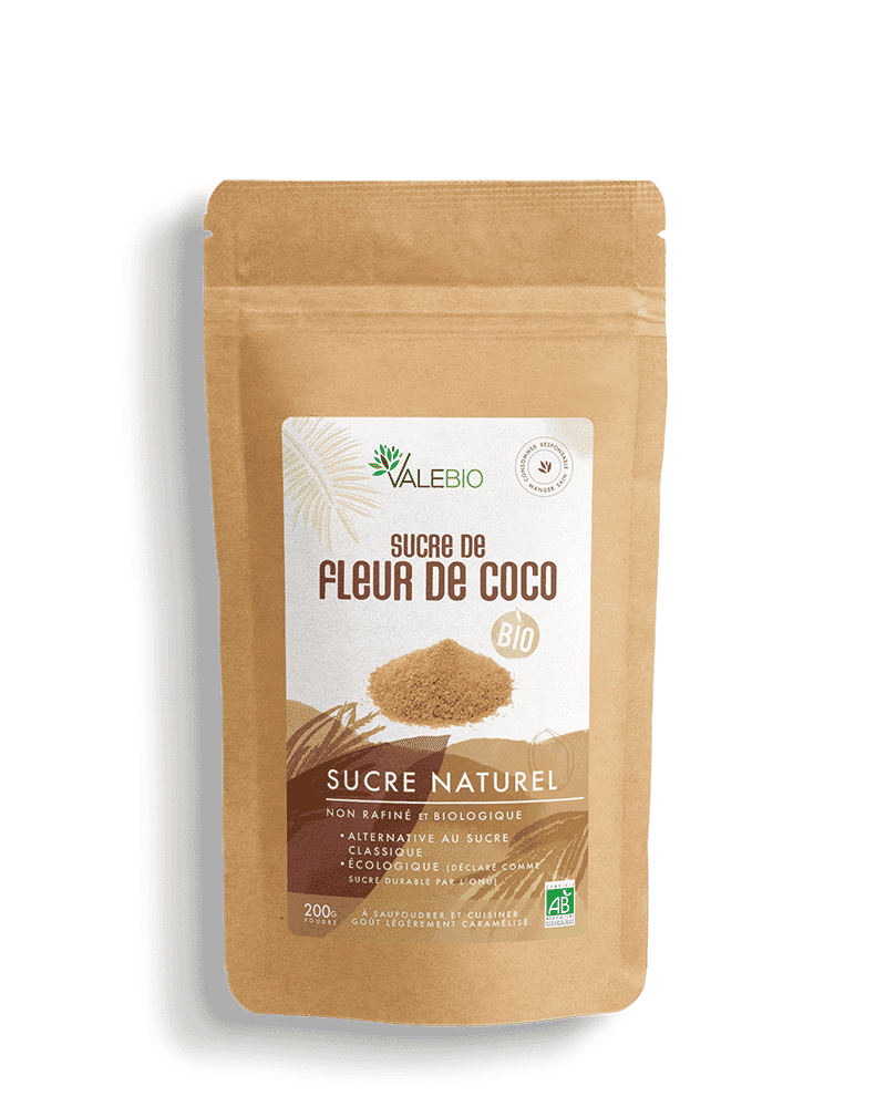 D'où vient notre sucre de fleur de coco ?Il s'agit du sucre cristallisé produit à partir du nectar des fleurs de coco (coco nucifera) provenant de la sève des bourgeons du cocotier. Il est proche du sucre brun, puisqu'il a un léger goût caramélisé. Il est souvent utilisé en substitut des sucres raffinés.Allégations