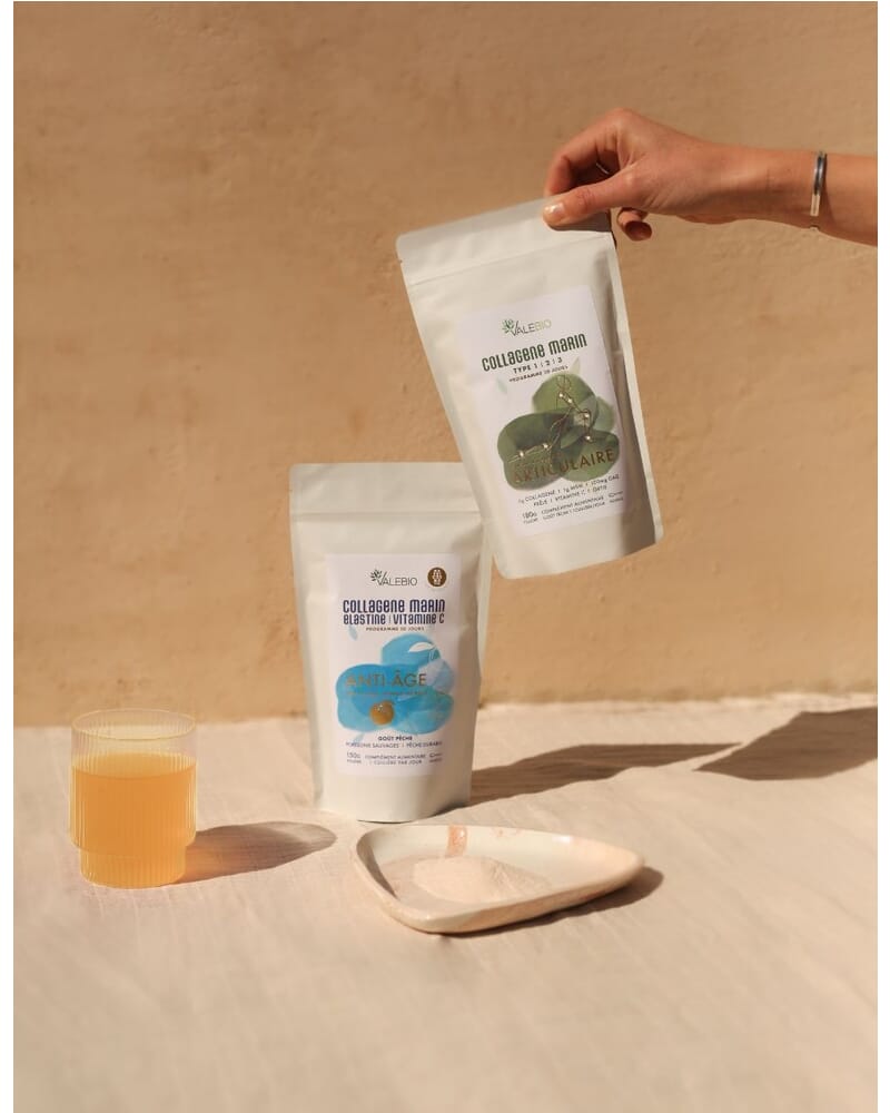Le Collagène Marin Anti-Âge est créé à travers le prisme de la qualité du collagène de type 1 à 3, ainsi que d’élastine hydrolysée et de vitamine C naturelle. Le Collagène Articulaire est, lui aussi, hautement dosé en collagène de type 1,2 et 3.