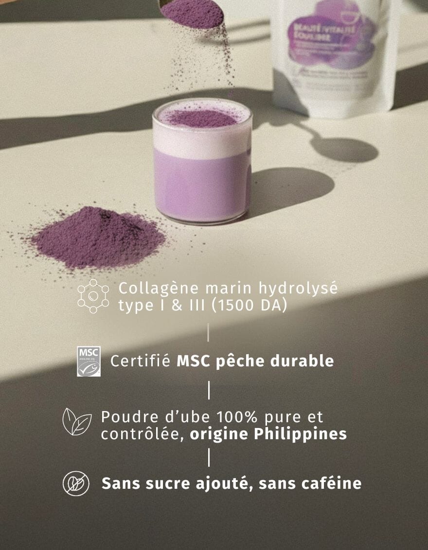 L'Ube Collagène Marin est bien plus qu’une boisson : c’est un rituel beauté et bien-être conçu pour sublimer votre peau tout en nourrissant votre vitalité intérieure.