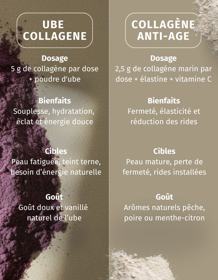 Quelle est la différence entre l’Ube Collagène et le Collagène Marin Anti-Âge ?