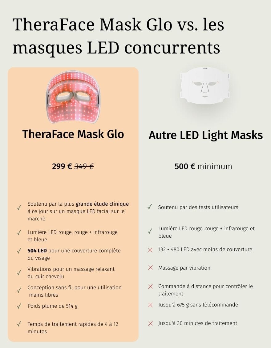Non. Le TheraFace Mask Glo ne remplace pas un traitement médical ou dermatologique. C’est une solution non invasive, cliniquement prouvée, pour améliorer la qualité de la peau à domicile et compléter d’autres approches si besoin.