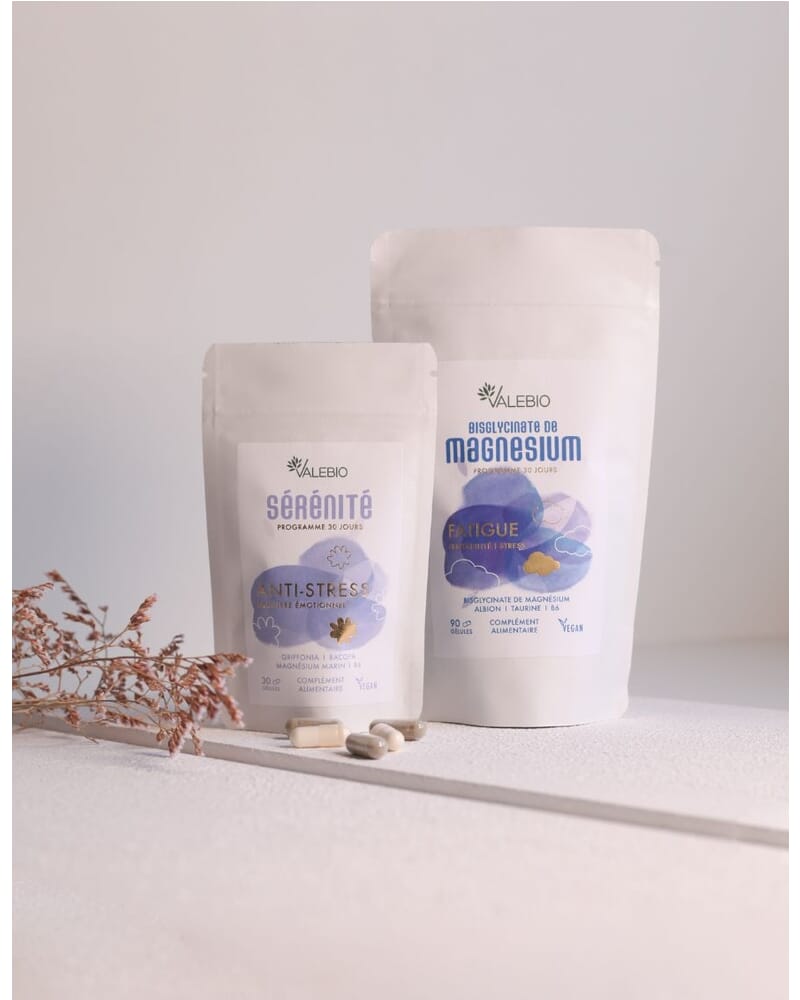Pour des résultats optimaux, nous recommandons de suivre une cure de 30 à 90 jours avec le Bisglycinate de Magnésium et de 1 à 3 mois avec le Complexe Sérénité.
